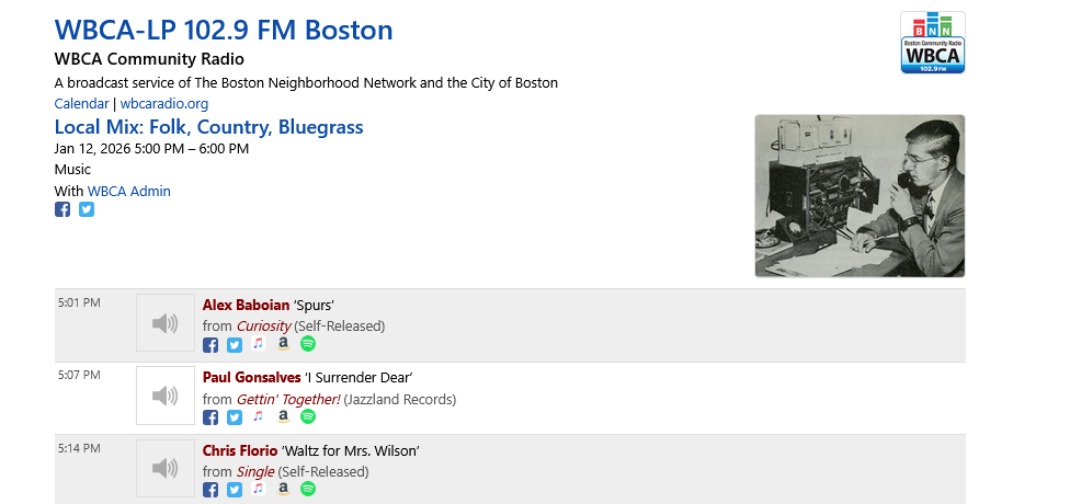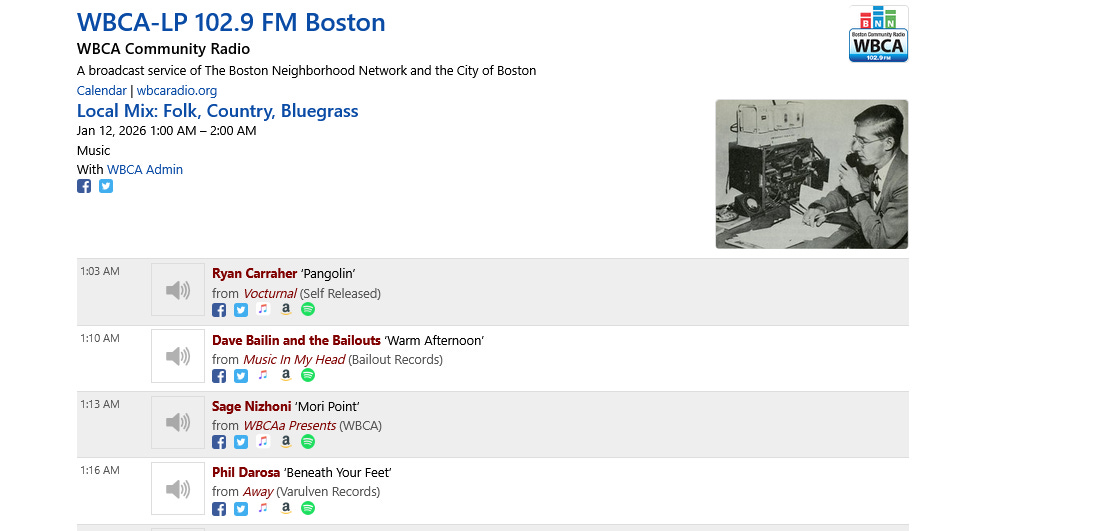 9:26 am Jan 12 2026 https://spinitron.com/WBCA/pl/21813797/Local-Mix-Folk-Country-Bluegrass