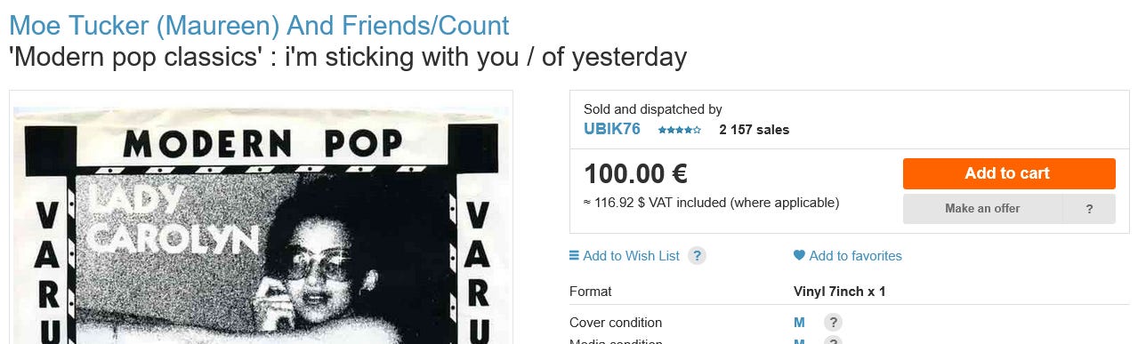 TRES TRES RARE / 1 face avec Maureen TUCKER (du VELVET UNDERGROUND) / face B avec “THE COUNT” VIGLIONE / + insert (mini poster recto/verso