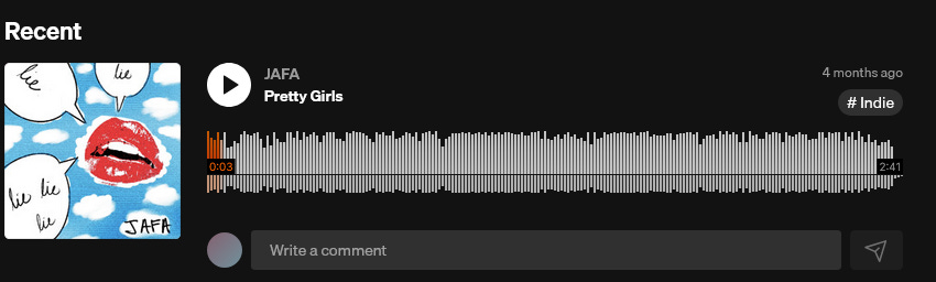 Clocking in at 2:41, perfect for pop radio, Jafa’s Pretty Girls is a tune that’s happy/sad, uptempo guitars bubbling under JAFA’s vocals, “second chances/past romance” - the singer’s various relationship thoughts align with the backing vocals, lending for repeated spins to help figure out where the protagonist is going.