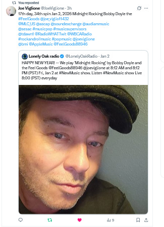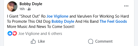 Bobby Doyle Jan 7 2026 "A Giant Shout Out to Joe Viglione and Varulven Ventures LLC for working so hard to promote this old dog Bobby Doyle and his band the Feel Goods. More music and news to come soon."