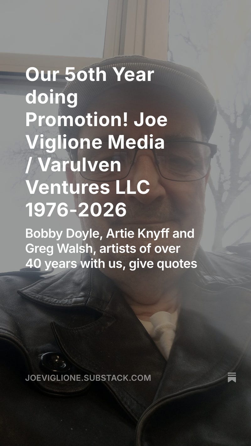 Our 5oth Year doing Promotion! Joe Viglione Media / Varulven Ventures LLC 1976-2026